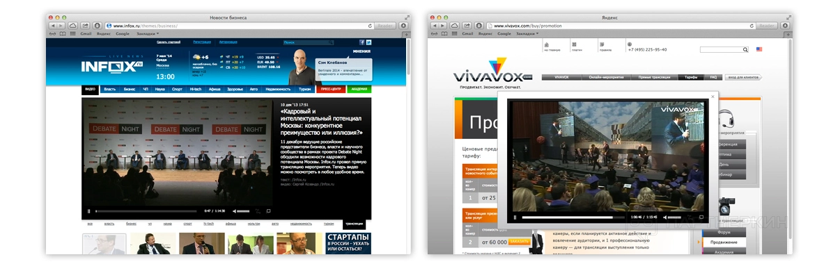 Прежде всего, отметим возможность проведения трансляций на корпоративных и партнерских сайтах. Обладая новейшими технологиями передачи потокового видео,