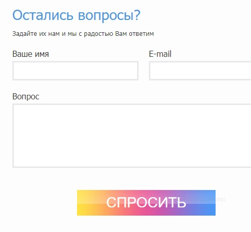 Если нужно связаться с техподдержкой, переходим в соседний блок и заполняем форму, где указываем имя, электронную почту и описание проблемы.