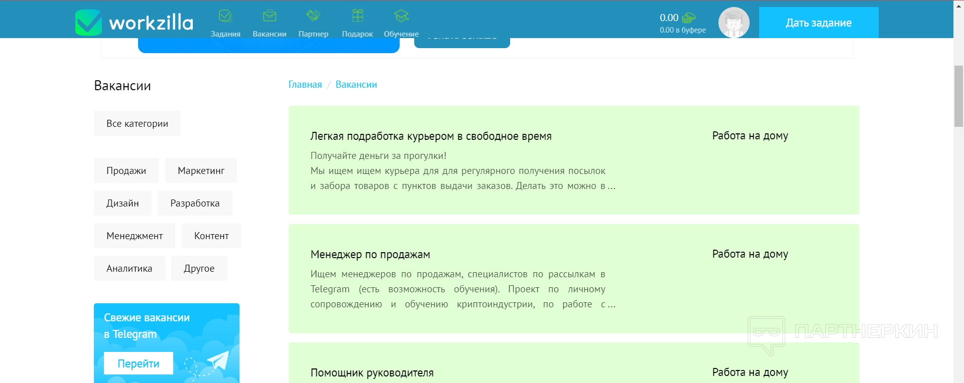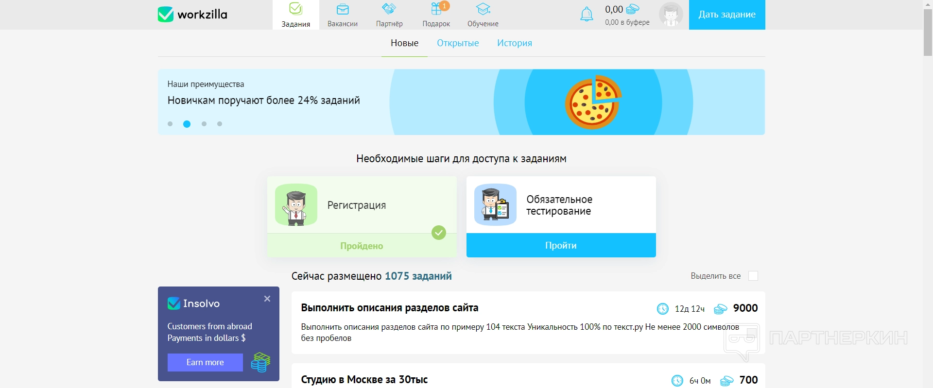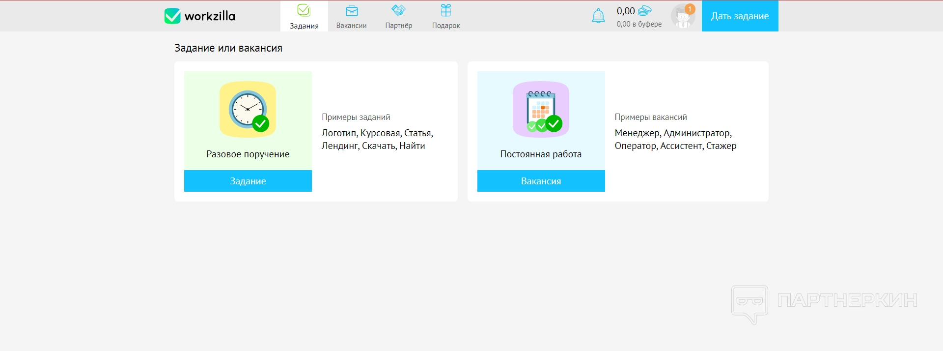 Задания — раздел с заданиями включает единоразовые или проектные задачи, которые можно быстро выполнить и получить вознаграждение.