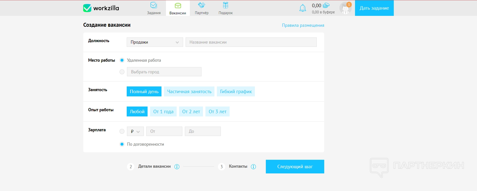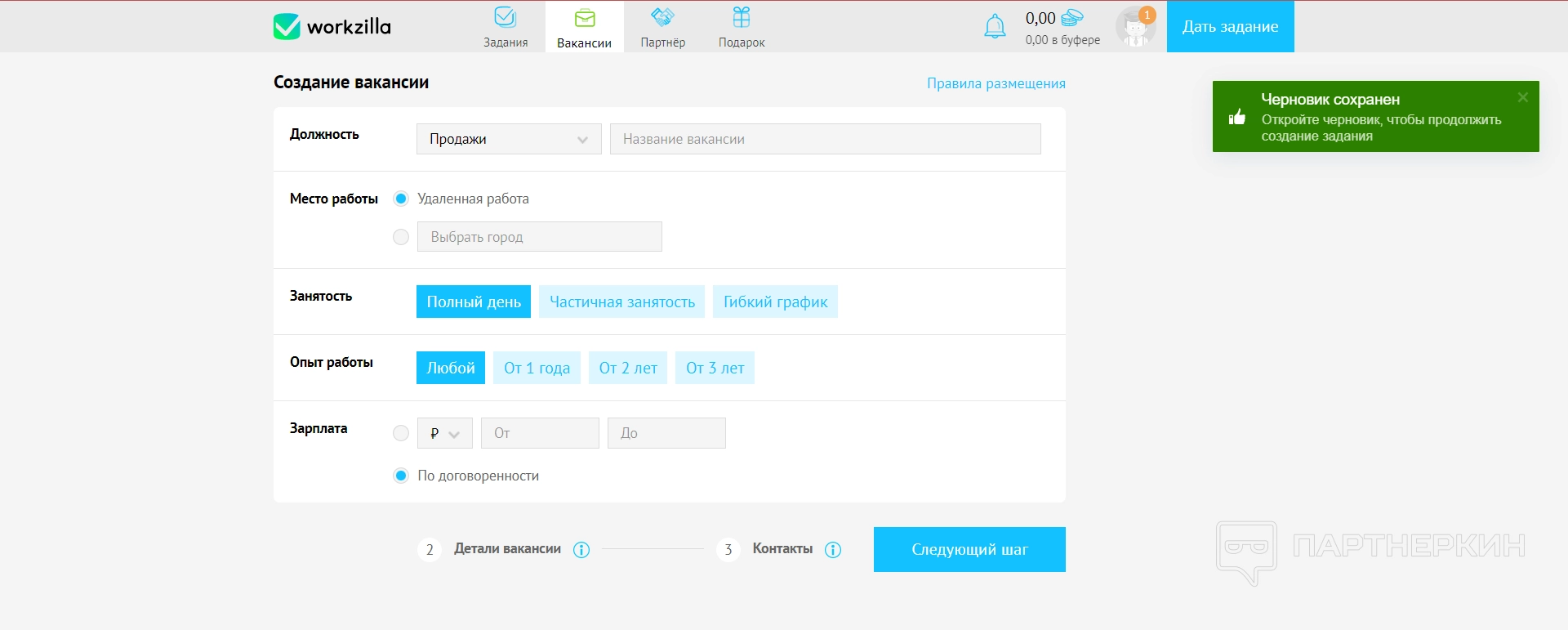 На этом настройка вакансии заканчивается — ее остается опубликовать и ждать отклика от исполнителей.