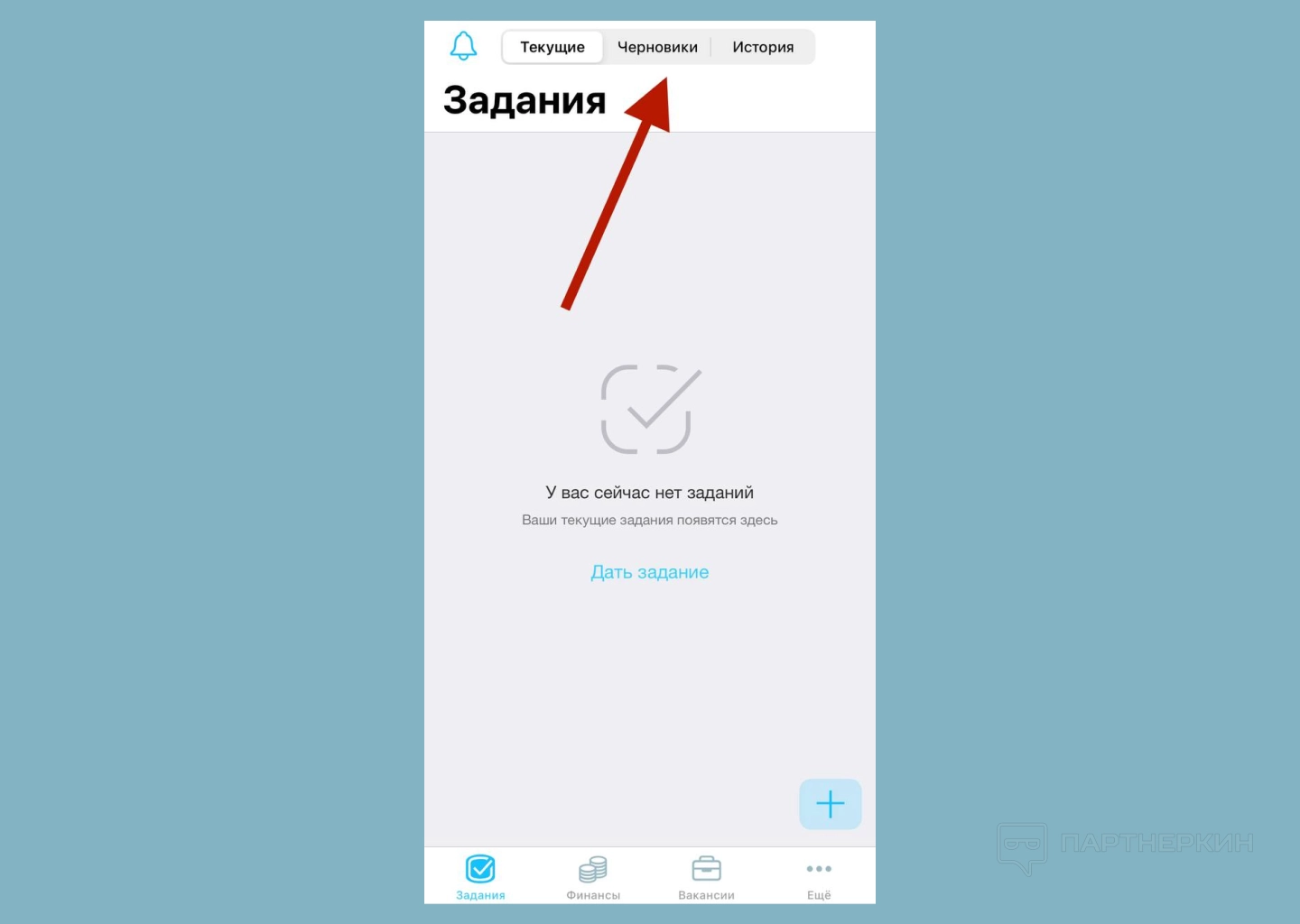 Для удобства все задания пользователя разделены на текущие, то есть те, которые он уже создал и опубликовал, а также на черновики — здесь хранятся неопубликованные задания. Есть история — там показываются все задания вообще, вне зависимости от того, опубликовали их или нет.