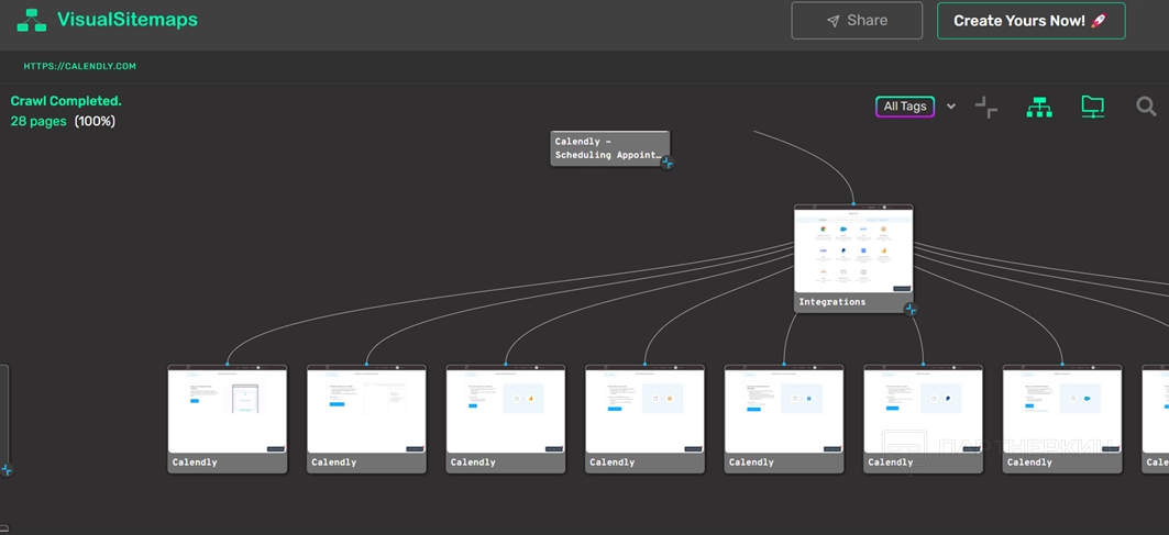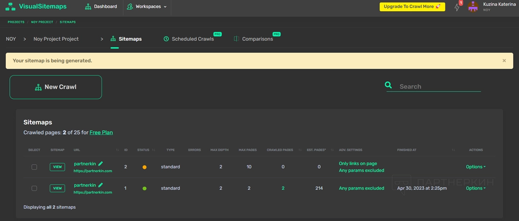 Процесс кроулинга относительно быстрый. Однако при больших объемах время может занять несколько часов. По завершению процесса сервис сообщит о готовности карты сайта автоматически.