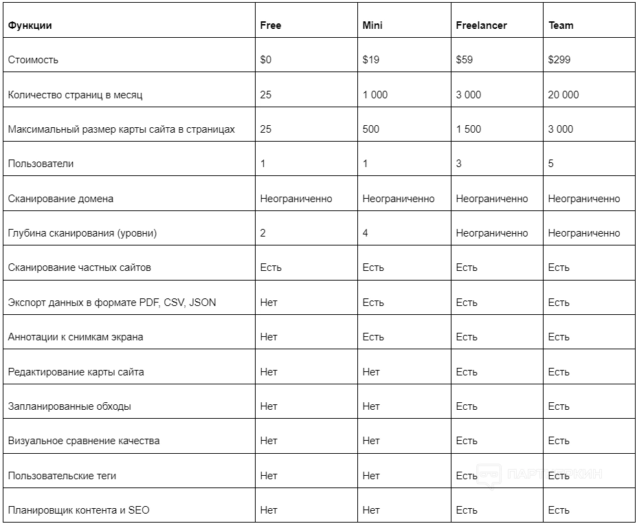 Глубина сканирования сайта зависит от типа пакета. В бесплатном тарифном плане можно кроулить только два уровня. При выборе платного тарифа возможности увеличиваются.