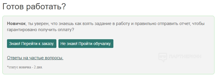 Чтобы взять задание в работу, нужно нажать на специальный символ в графе «Действия». Для новых пользователей появится предложение пройти обучение на сервисе. В уроках рассказывается: