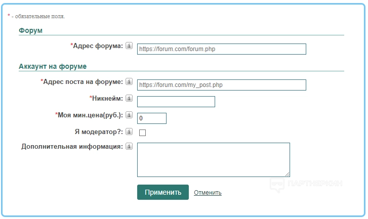 Чтобы зарабатывать этим способом, пользователю нужно добавить аккаунты на форумах. Фрилансеру необходимо указать следующую информацию: