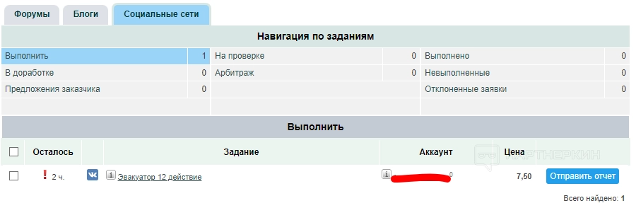 Для теста возьмем задание в работу. Оно отобразится в разделе «Социальные сети» — «Задания».