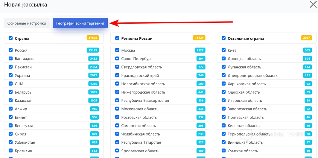 - географический таргетинг.