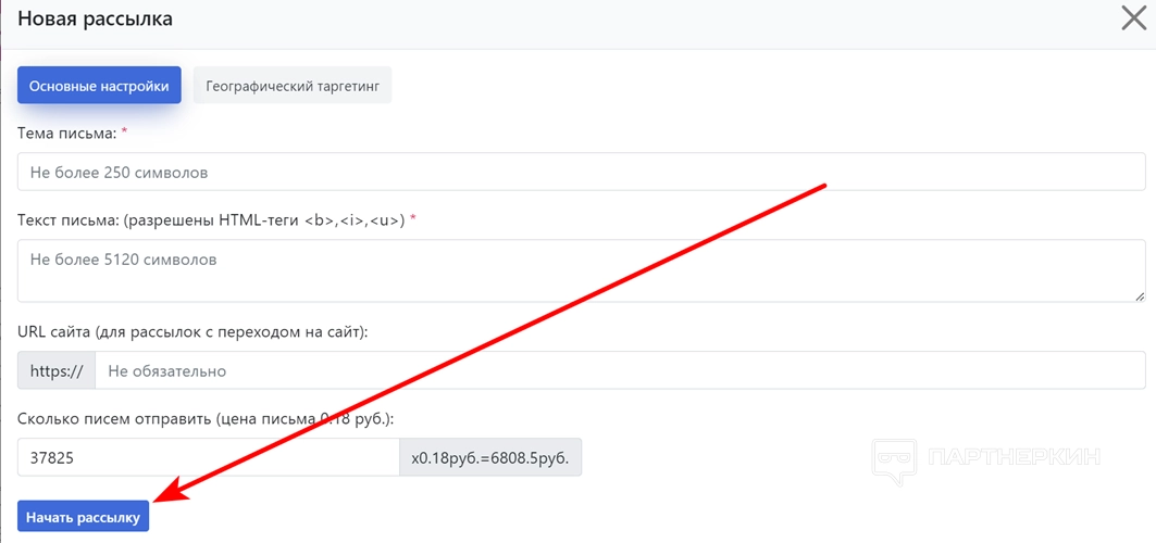 - Нажмите на кнопку «Начать рассылку».