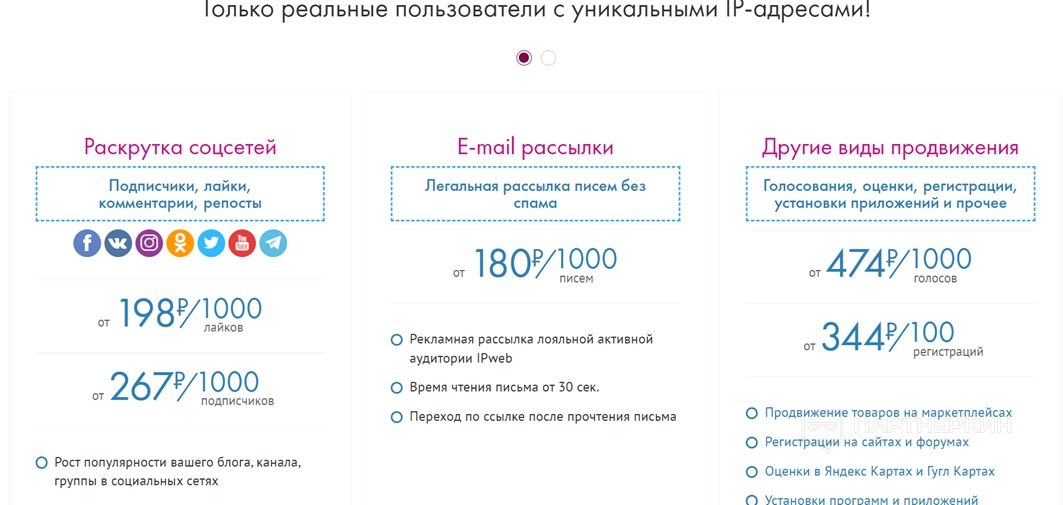 IPweb начал функционировать в 2004 году. Комплексное продвижение в Интернете выгодно заказчикам и исполнителям. Сайт предлагает получать простой доход от просмотра рекламы и видео, проставления лайков, регистрации в группах и других простых действий. На данный момент сервис составляет хорошую конкуренцию среди бирж.