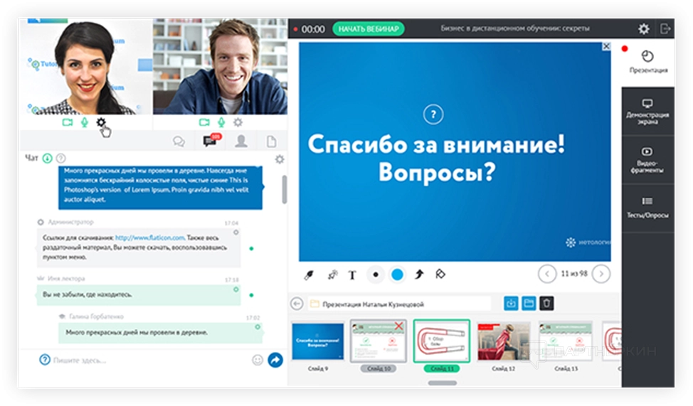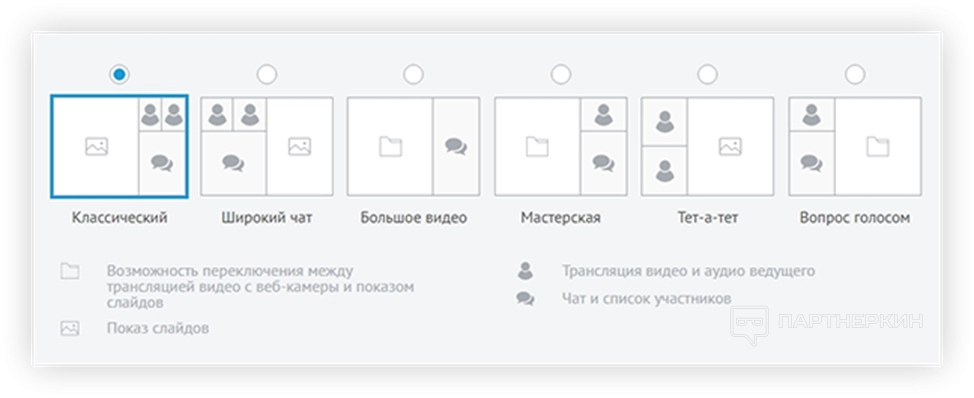 - готовые макеты вебинарной комнаты.