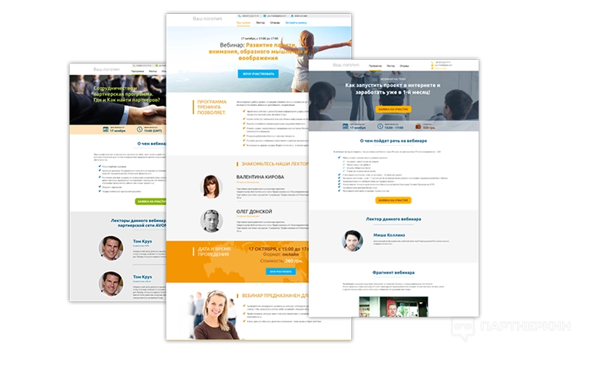 Это готовые дизайнерские шаблоны для быстрого создания конверсионных лендингов. Продукт внедряет система прямо в вебинарную платформу. Для этого администратору не нужно нанимать дизайнеров и программистов HTML.