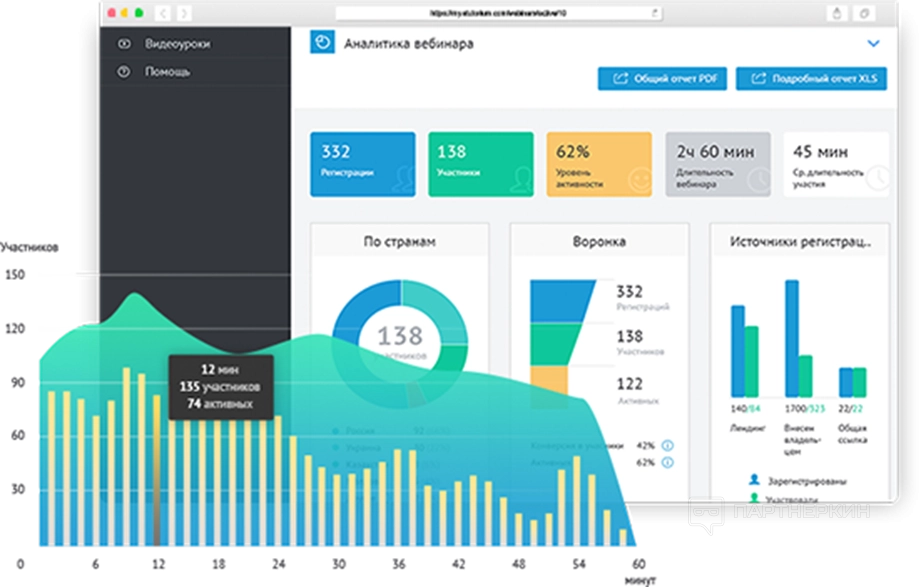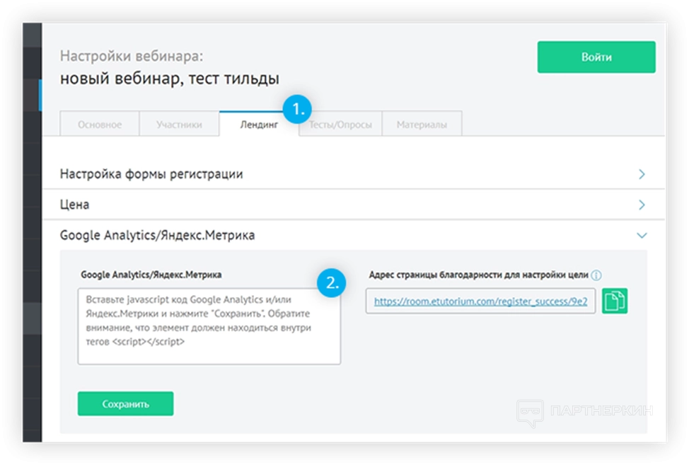 - Google Analytic и Яндекс Метрика . Интеграция с аналитическими сервисами дает возможность просматривать детальную статистику по активности участников вебинаров. Можно просматривать статистику лендингов.