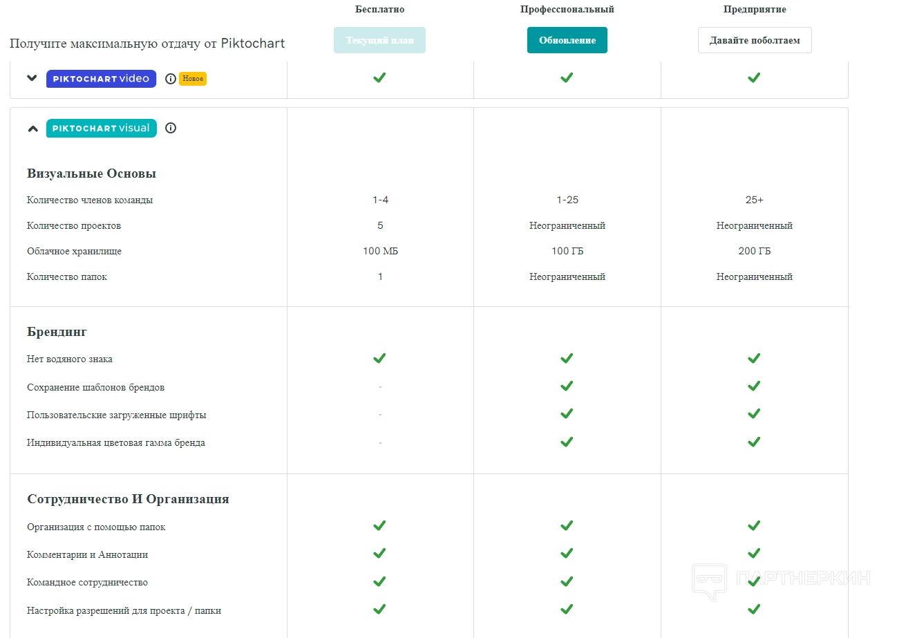 В блоке «Тарифный план» можно найти стоимость услуг и описание особенностей каждого тарифа. На момент написания статьи сервис предлагал три пакета: