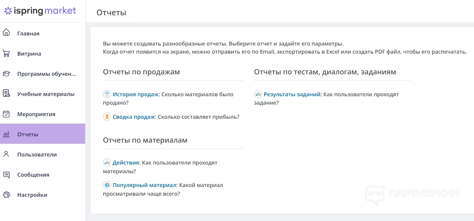 iSpringинтегрируется с Яндекс.Метрикой и Google.Analytics. По отчетам можно определить, сколько пришло клиентов, сколько заработано денег, откуда приходят клиенты, какие курсы наиболее популярны.