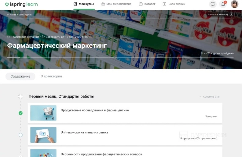 Предусмотрены курсы по фармконсультированию, маркетингу, продажам, работе с возражениями, стандартам работы в аптеке. Форматы обучения — вебинары, деловые игры, тренажеры продаж. У заказчика есть возможность купить курсы, посттренинговое сопровождение, создать свои курсы с нуля.