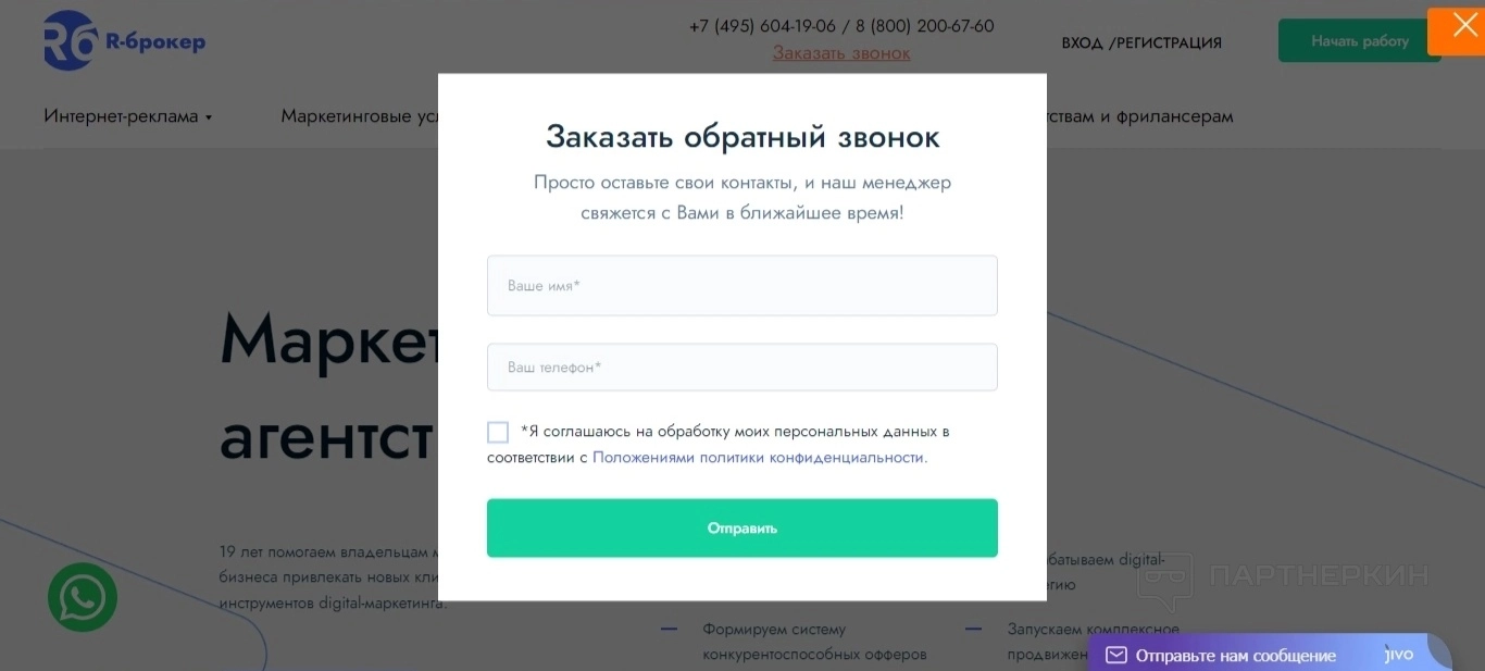На главной странице находится кнопка Заказать звонок . Таким образом, пользователь указывает на обратный звонок специалистам сервисной службы. Достаточно оставить свое имя и номер телефона, после чего во время работы специалисты агентства перезванивают для обсуждения всех возникших вопросов. Таким образом, все свои идеи, разработки, возникшие трудности заказчик будет разрабатывать в привычной форме.