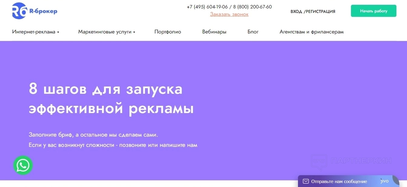 Русский вариант для связи с агентствами — кнопка Начать работу .