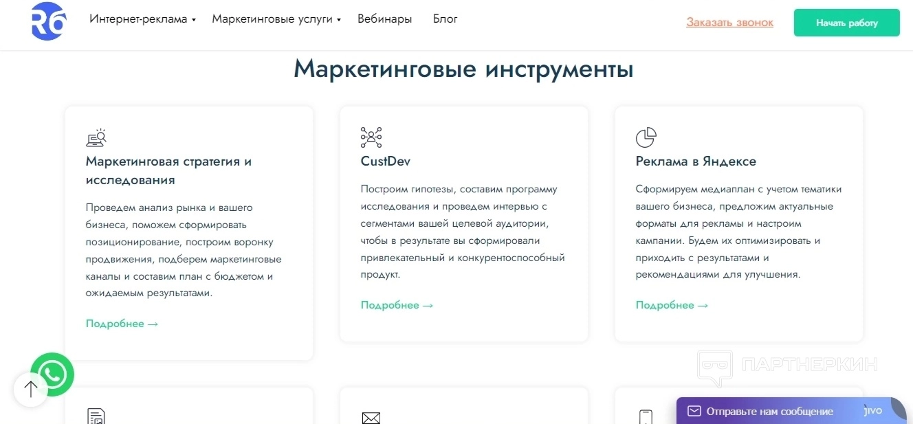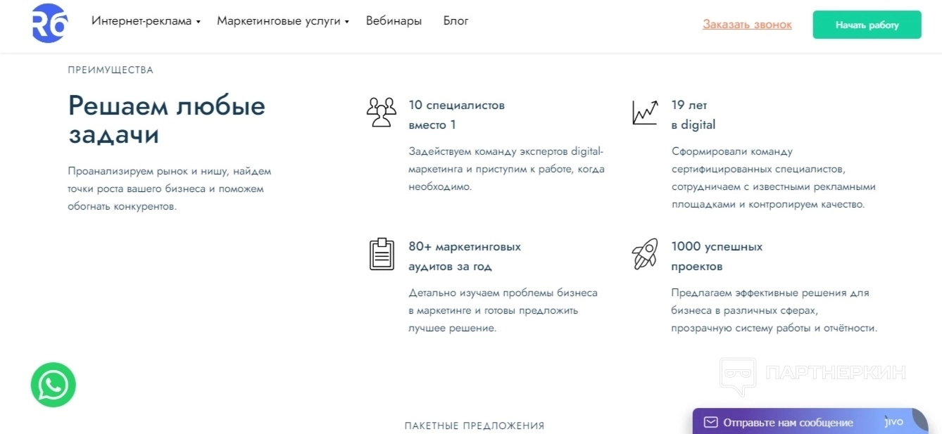 — это уникальная платформа со своими особенностями и специалистами. Маркетинговое агентство готово взяться за проекты и задачи любой сложности, позволяющие обращаться к ним по разным вопросам. Основными инструментами являются продвижение компаний в сети посредством использования рекламы разного вида, а также предоставление комплексного аудита в сфере маркетинга. К внешним плюсам можно отнести наличие функций разработки продающих одностраничников (лендинга) и разработку с нуля эффективных решений для разных целей и видов бизнеса.