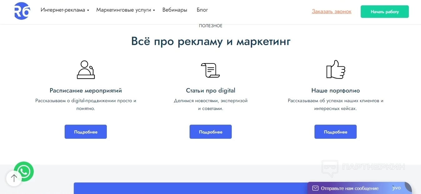 Для тех, кто пока сомневается в зарубежных агентствах, существует два полезных раздела, которые помогают ближе познакомиться с компанией. Разработчики ведут свой собственный блог, а также обеспечивают доступ к онлайн-мероприятиям от ведущих экспертов в области цифровых технологий.