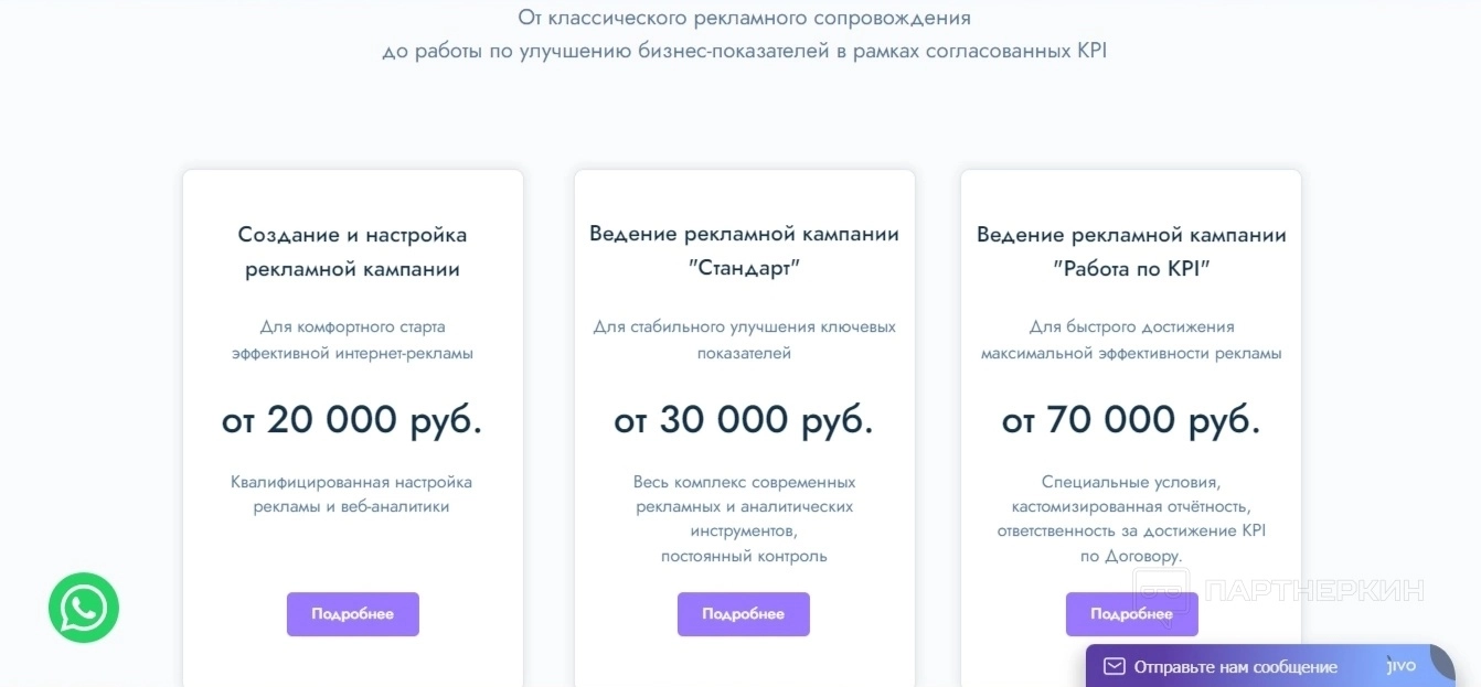 Поскольку сервис является агентством, то и оплата происходит сразу за комплексный подход. Минимальная стоимость услуг сервиса начинается от 20 тысяч рублей. Для тех, кто хочет поближе познакомиться с агентствами или просто узнать интересную и полезную информацию о сфере цифровых технологий, в открытом доступе есть блог от компании и возможность участвовать в объявлениях в онлайн-вебинарах.