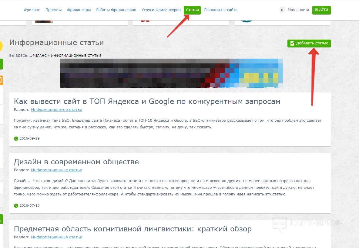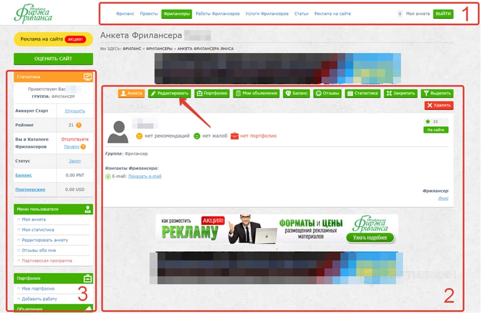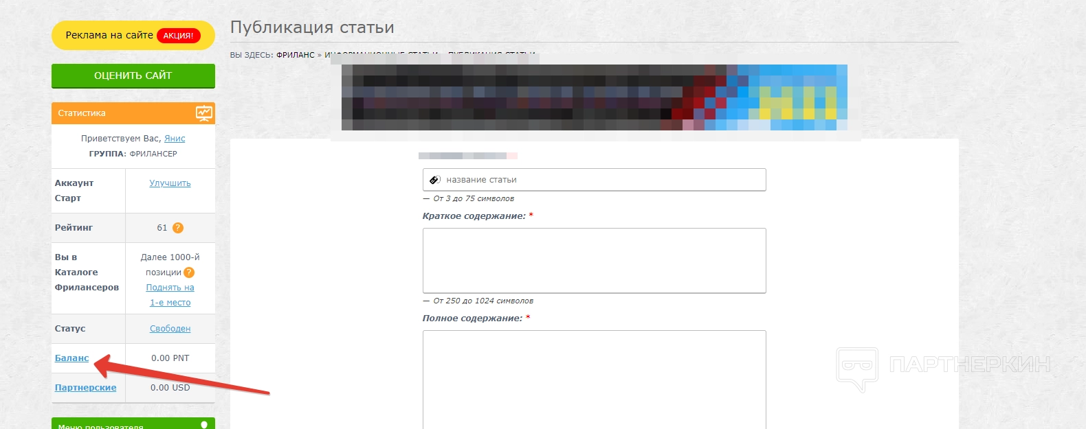 - Панель управления сайта — здесь вебмастер может получить доступ к разным разделам биржи.