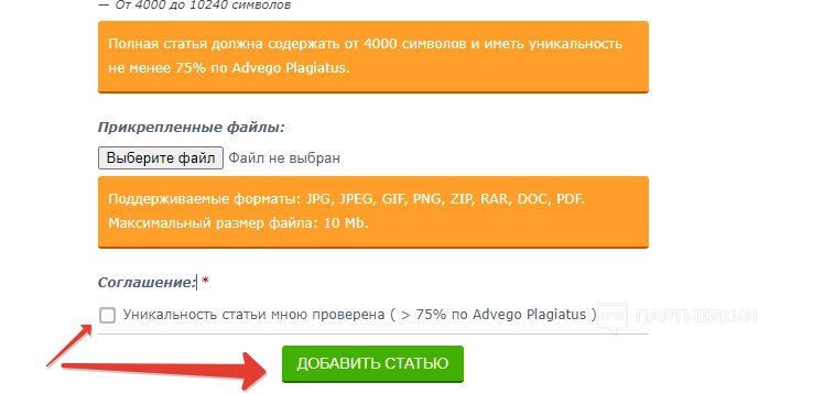 В конце ставим галочку на счет проверенной уникальности и жмем на «Добавить статью».