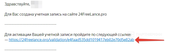 В конце нужно зайти на почту и перейти по ссылке из письма, которые пришлет сервис 24Freelance.pro.