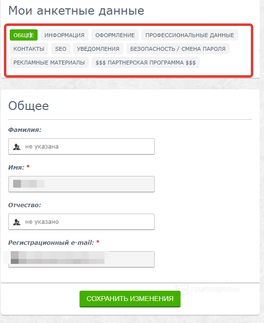 Чтобы приступить к заполнению анкеты, жмем на кнопку «Редактировать». Откроется форма, где вебмастер увидит разные разделы анкеты, которые подлежат заполнению: