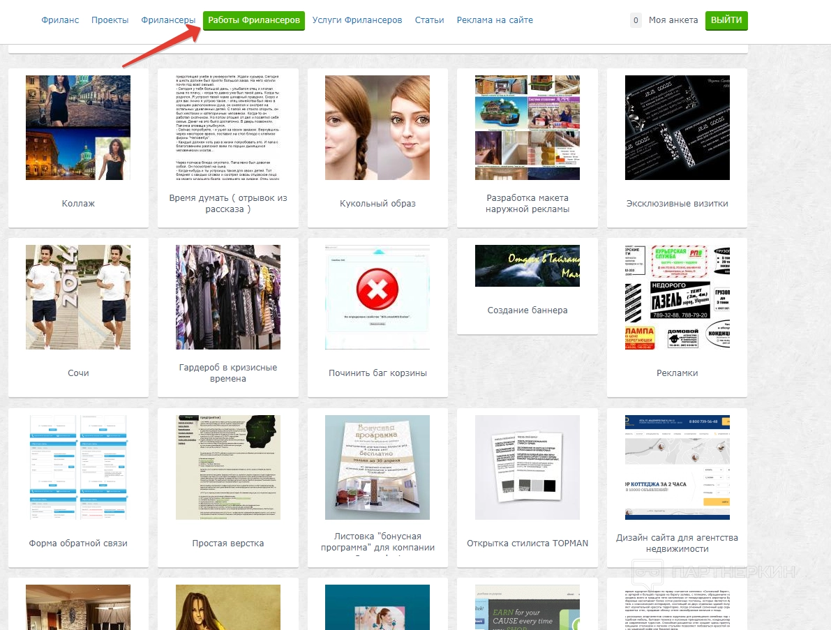 Раздел «Работы для фрилансеров» — еще одно место, где заказчик может найти своего исполнителя. Только в этом разделе представлены не анкеты, а портфолио исполнителей. Преимущество в том, что для поиска работы предусмотрена система фильтрации, позволяющая сортировать работы по специализации: