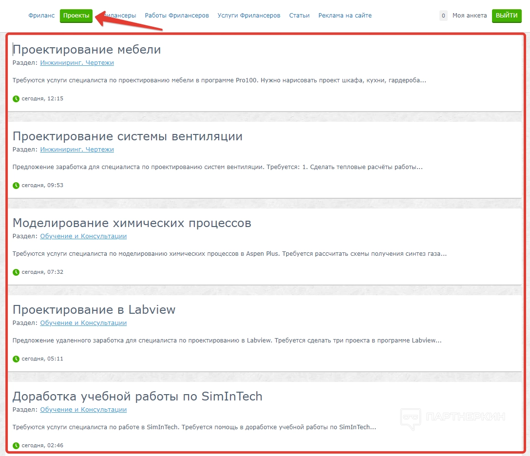 - Поиск проектов. На платформе можно найти заказы в разных категориях - от веб-разработки и дизайна до переводов и копирайтинга.