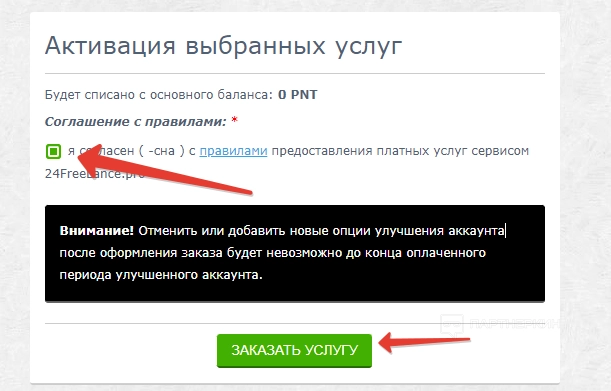 Когда все услуги будут выбраны, соглашаемся с правилами платформы и жмем «Заказать услугу».
