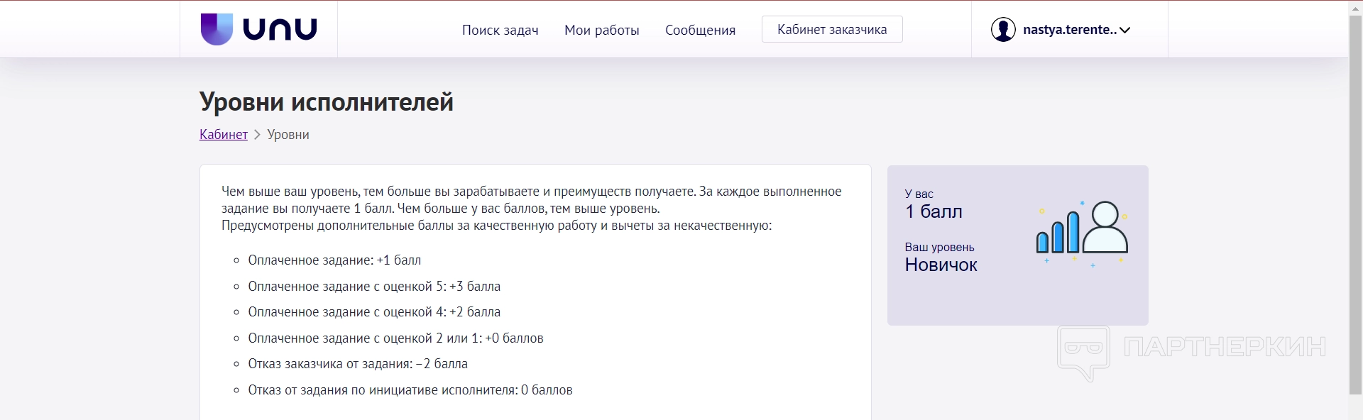 У исполнителей тоже есть своя система распределения по уровням. Баллы засчитываются уже по-другому — за каждое выполненное задание пользователь получает один балл. Если качество у работы отличное, то иногда могут выдаваться и бонусные баллы. Но из-за такой системы за неудачные задания баллы будут сниматься.