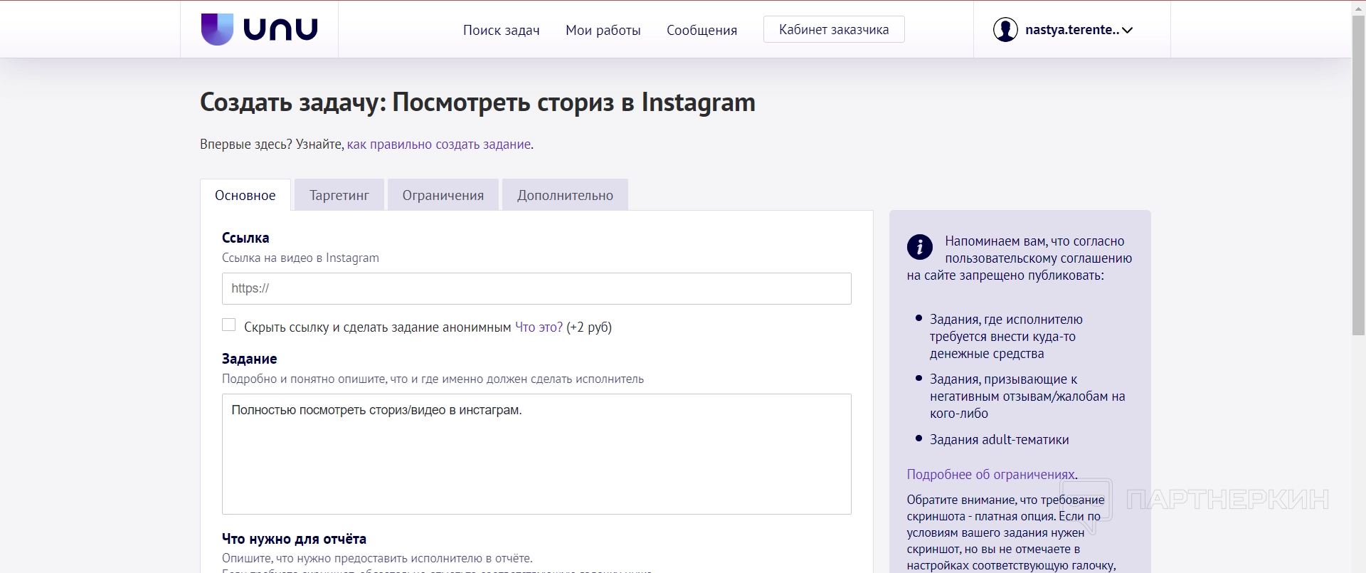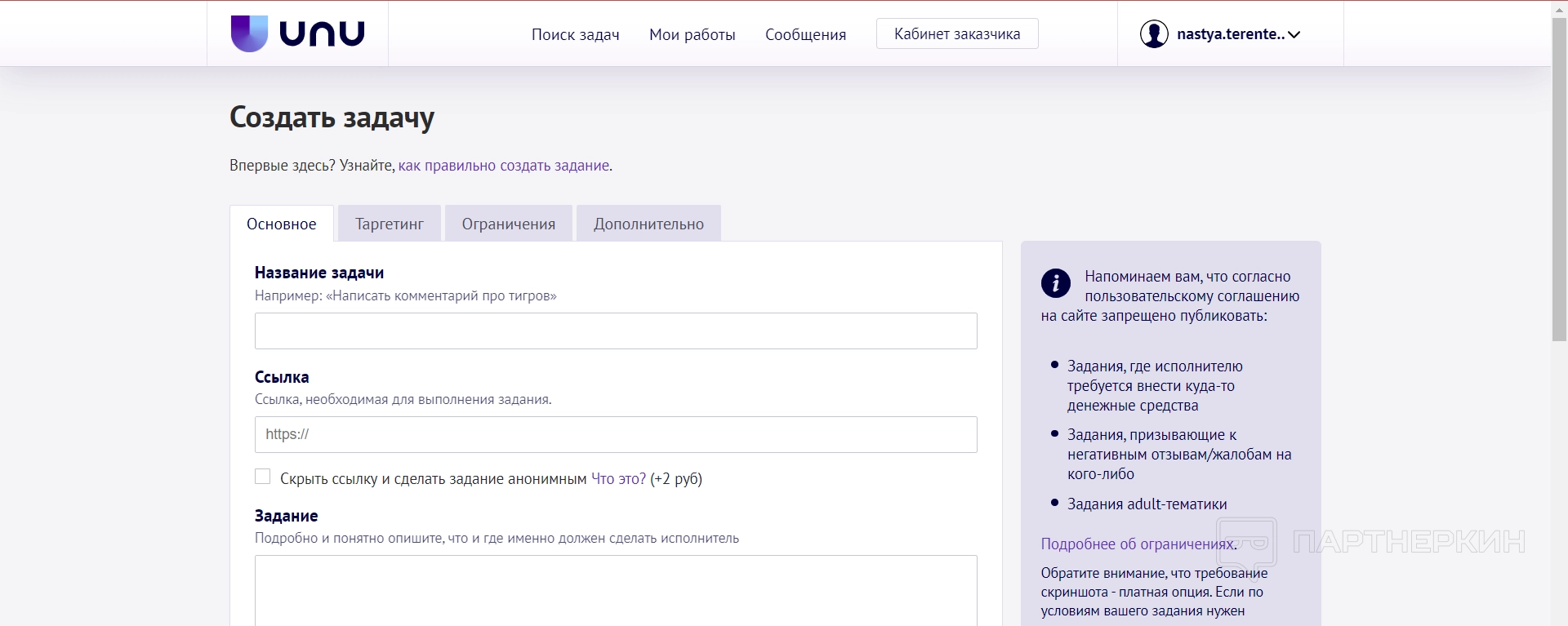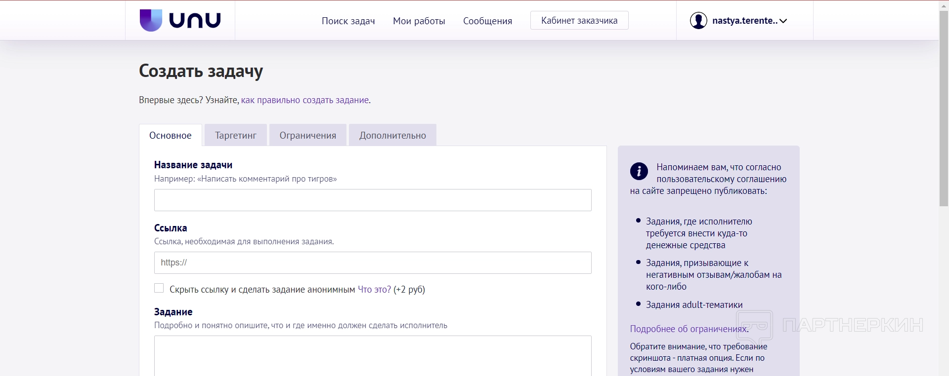 Важно знать, что при составлении любого задания можно в качестве отчета потребовать скриншот, при этом эта функция будет платной — +1 рубль. Также можно любое задание сделать анонимным для пользователей, и тогда информация о ресурсе будет доступна только исполнителю, но эта возможность будет увеличивать стоимость задачи на 2 рубля.