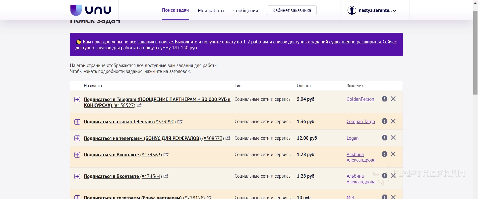 Как только проверка завершится, пользователь сможет просматривать все заказы на платформе, но их количество будет ограничено — на общую сумму 142 тысячи рублей. Чтобы расширить список, нужно будет выполнить пару заданий и получить за них оплату.