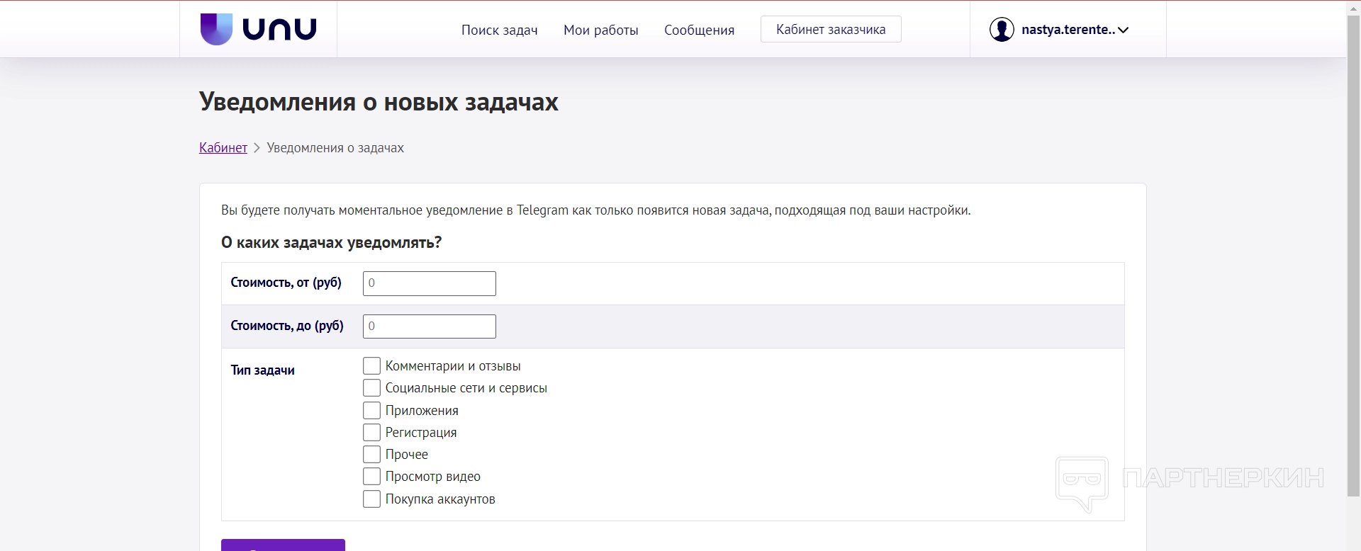 - уведомления о задачах — тут можно настроить получение уведомлений о выбранных задачах. Как только пользователь отметит необходимый вариант заданий, то он сможет в Телеграм получать уведомления о выходе новых;