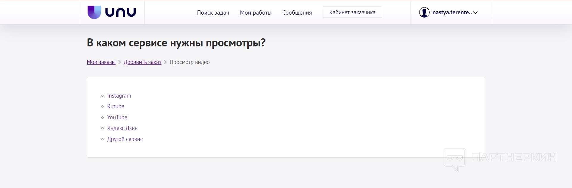 Просмотр видео. С помощью данного раздела можно создать задачу на просмотр видео или сторис. Для этого нужно выбрать социальную сеть или нужный видеохостинг.