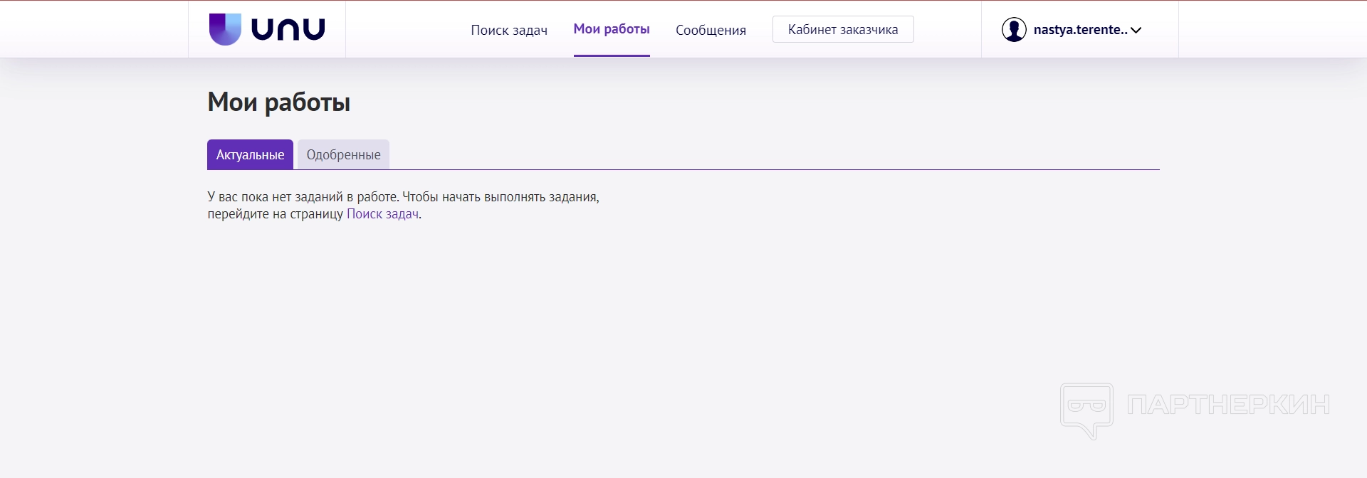 Мои работы. Этот раздел необходим для исполнителей, так как с его помощью можно внимательнее изучить условия своих заданий, а также просмотреть те, что уже были выполнены. Подразделяются все заказы на две группы для удобства — это актуальные, где хранятся все задачи, которые пользователь пока просто взял для исполнения, и одобренные, где можно просматривать уже выполненные и оплаченные задачи.