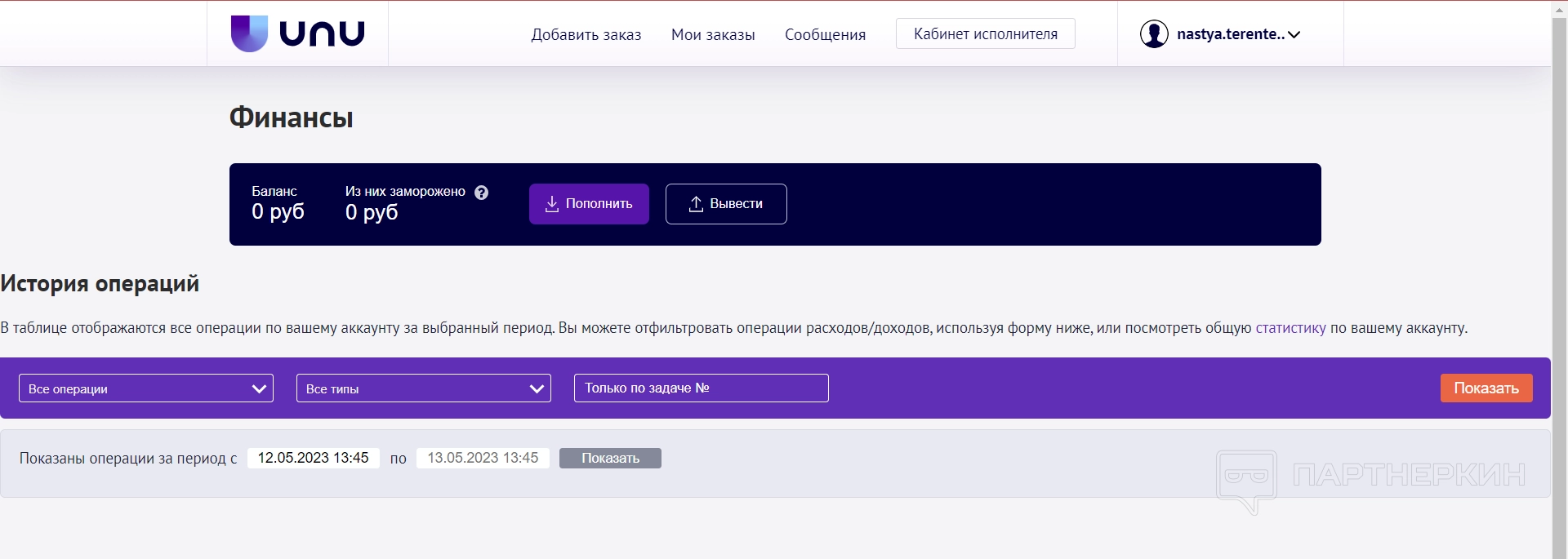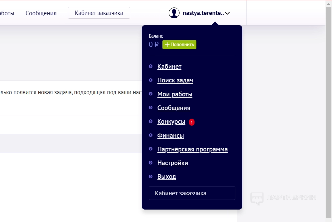 В кабинете есть и другие пункты, как в интерфейсе заказчиков, — давайте подробно их рассмотрим: