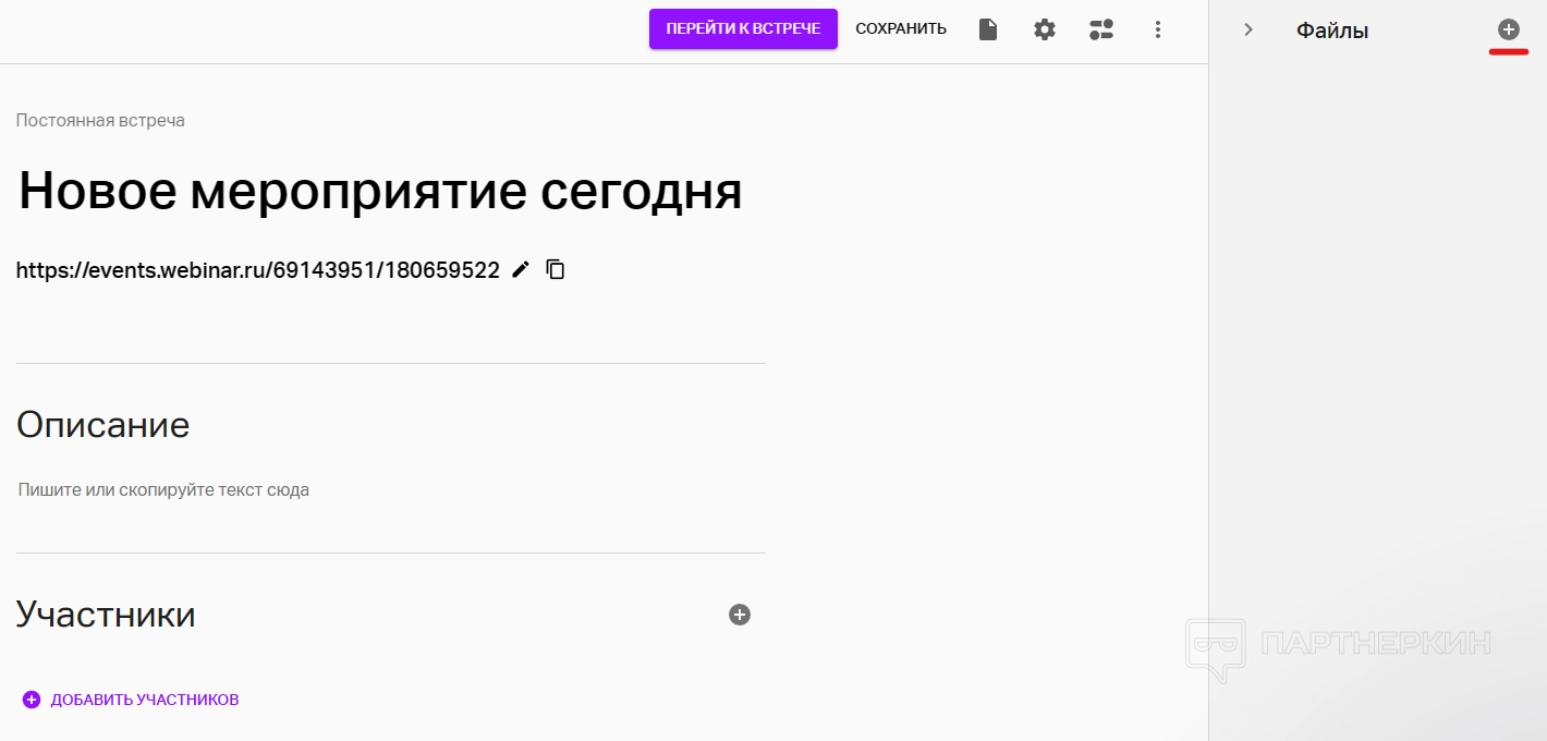 Как добавить файлы до вебинара