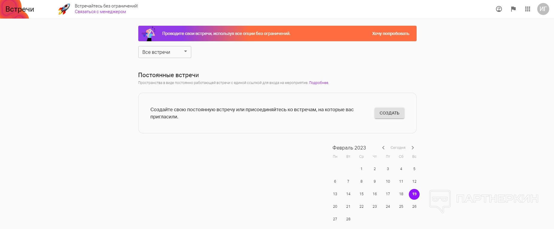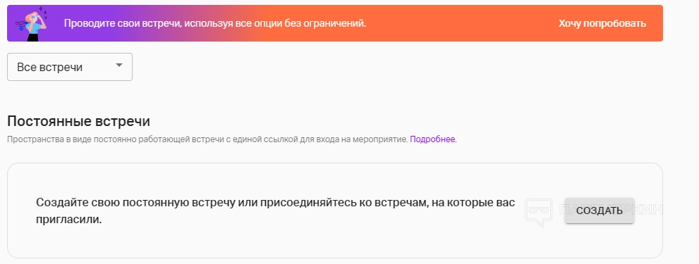 • Постоянная встреча. Возможность создать пространство, постоянно доступное по единой ссылке.
