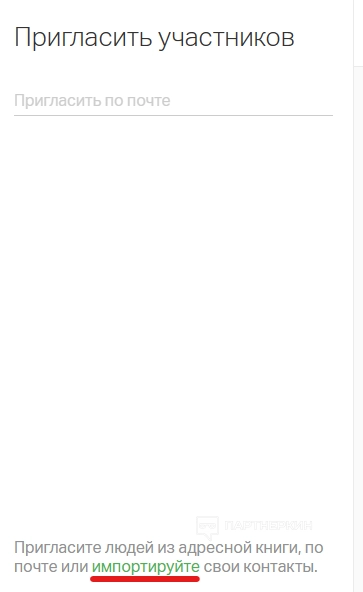 Импорт из файла. Чтобы добавить пользователей этим способом, нужно нажать кнопку «импортировать» на странице приглашения участников.