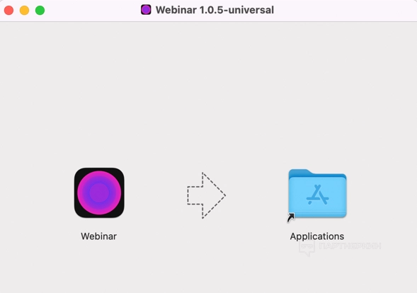 2. Откроется окно, в котором нужно перенести иконку webinar в папку applications.