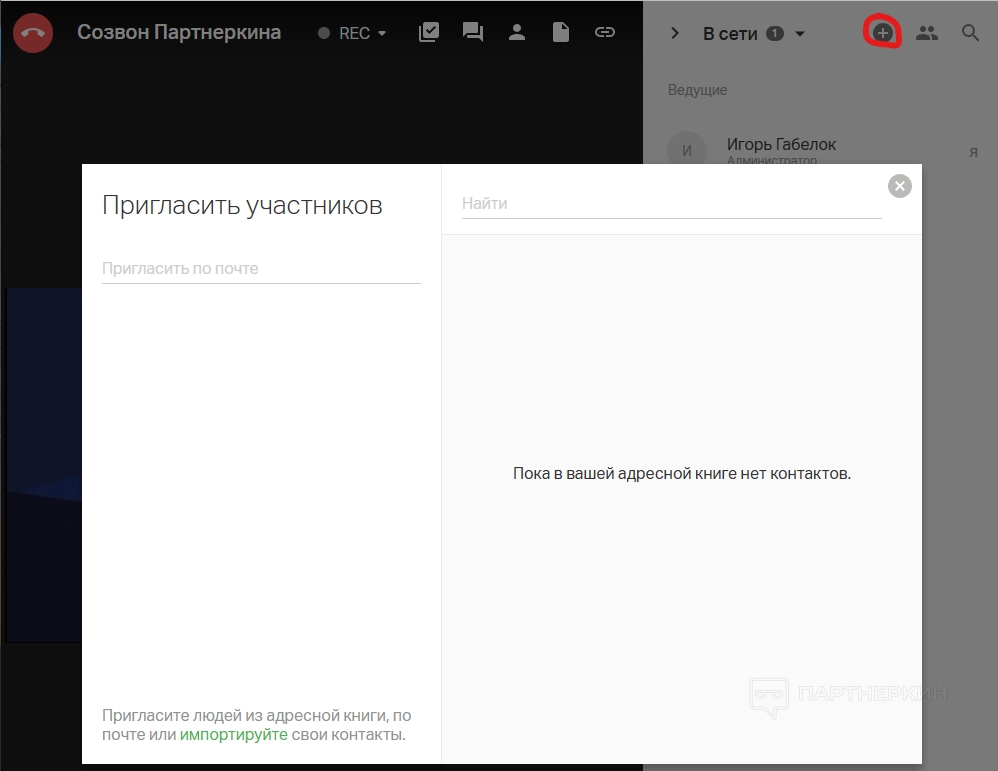 Приглашение из адресной книги. В окне добавления участников можно выбрать необходимые контакты из сохраненных в адресной книге. Для быстрого поиска можно вводить ранее добавленные теги.