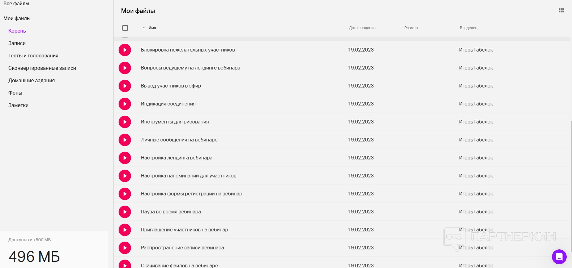 1. Загрузить файлы в хранилище. Чтобы загрузить файл с компьютера, необходимо перетащить его с рабочего стола в специальную зону. Для удобного поиска документов рекомендуется создать в файловом менеджере папки с названиями вебинаров. Сервис не поддерживает анимацию в презентациях. При загрузке таких документов они будут переконвертированы файловым менеджером в формат pdf.