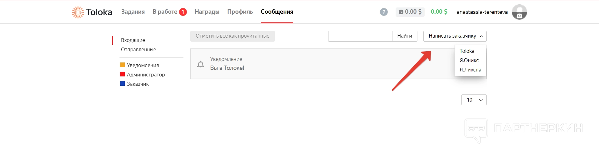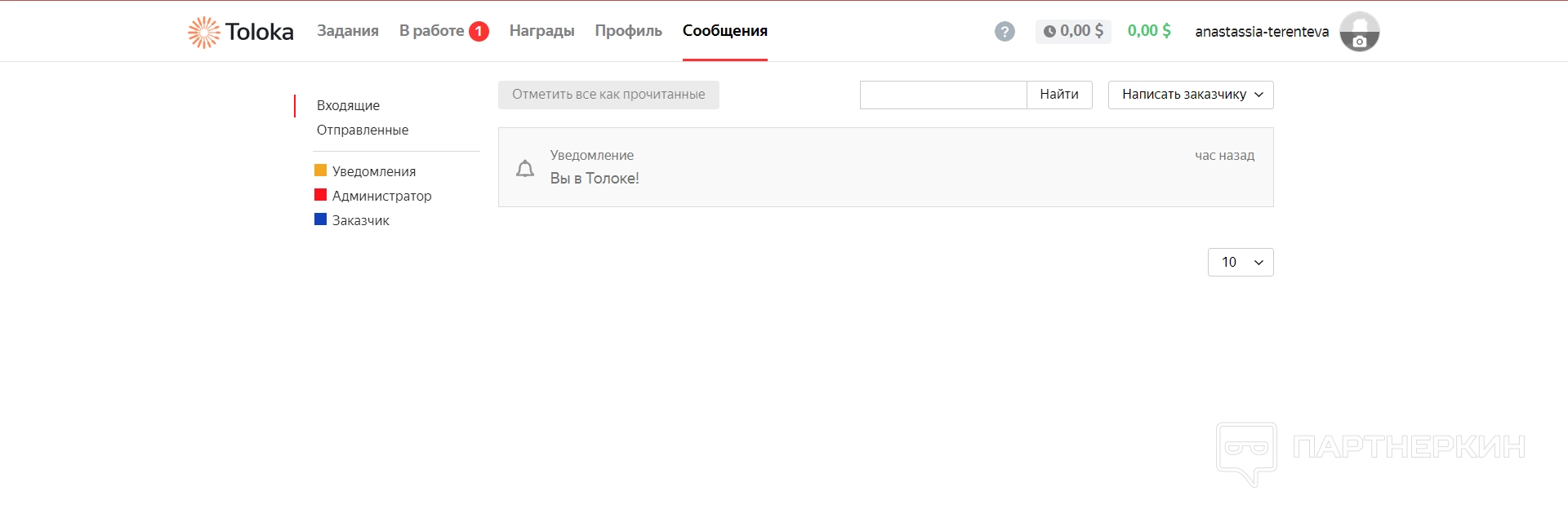 Сообщения — в этом разделе показываются все сообщения, которые получал пользователь. При этом они разделены по типам — красным помечаются сообщения от администраторов, оранжевым — от системы, а синим — от заказчика.