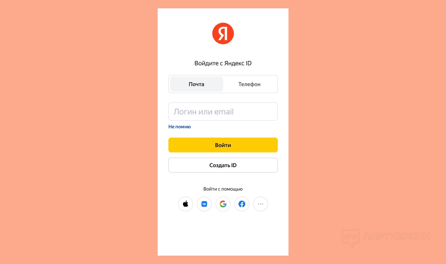 Если же аккаунта у пользователя до этого не было, он может пройти регистрацию с нуля — для этого ему нужно создать свой Яндекс ID. С помощью такого способа пользователь в дальнейшем может без проблем заходить в любые сервисы Яндекса через одну учетную запись — это довольно удобно.