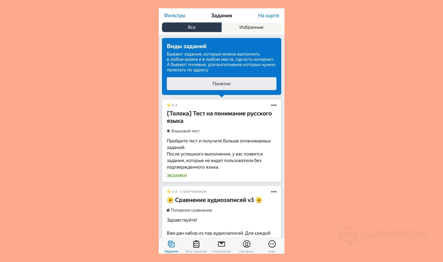 | Никакого обмана, все прозрачно и честно — если работа пользователя принимается, он гарантированно получает за него оплату. Никаких подводных камней в этом вопросе нет, так как заказчиками на платформе выступают сама система Яндекса и проверенные пользователи | Строгие системы оценки — некоторые задачи требуют максимально объективного взгляда пользователя. Если оценка покажется необъективной или заведомо ложной, то система может легко отклонить работу пользователя и не оплатить ее впоследствии. Поэтому стоит внимательно вчитываться в описание и в сами задания, чтобы не тратить время впустую |