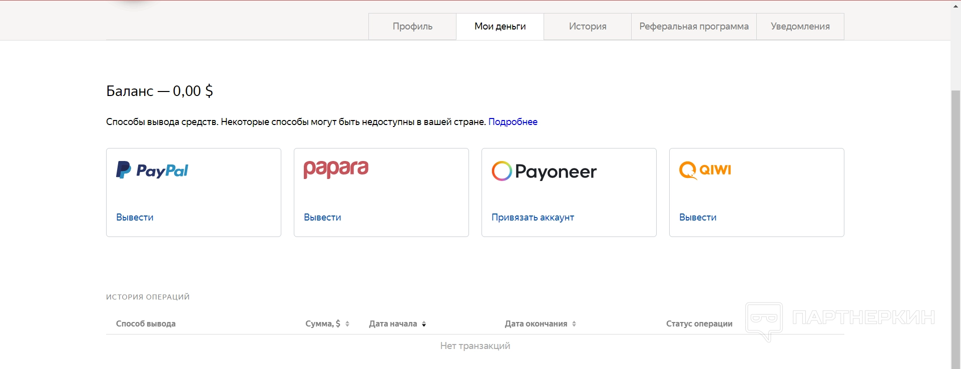 В следующем пункте под названием «Мои деньги» пользователь может просматривать историю своих операций, количество средств на балансе, а также выводить их по необходимости. При этом важно учитывать, что не все указанные способы будут работать в конкретной локации — они в основном подходят для жителей России.