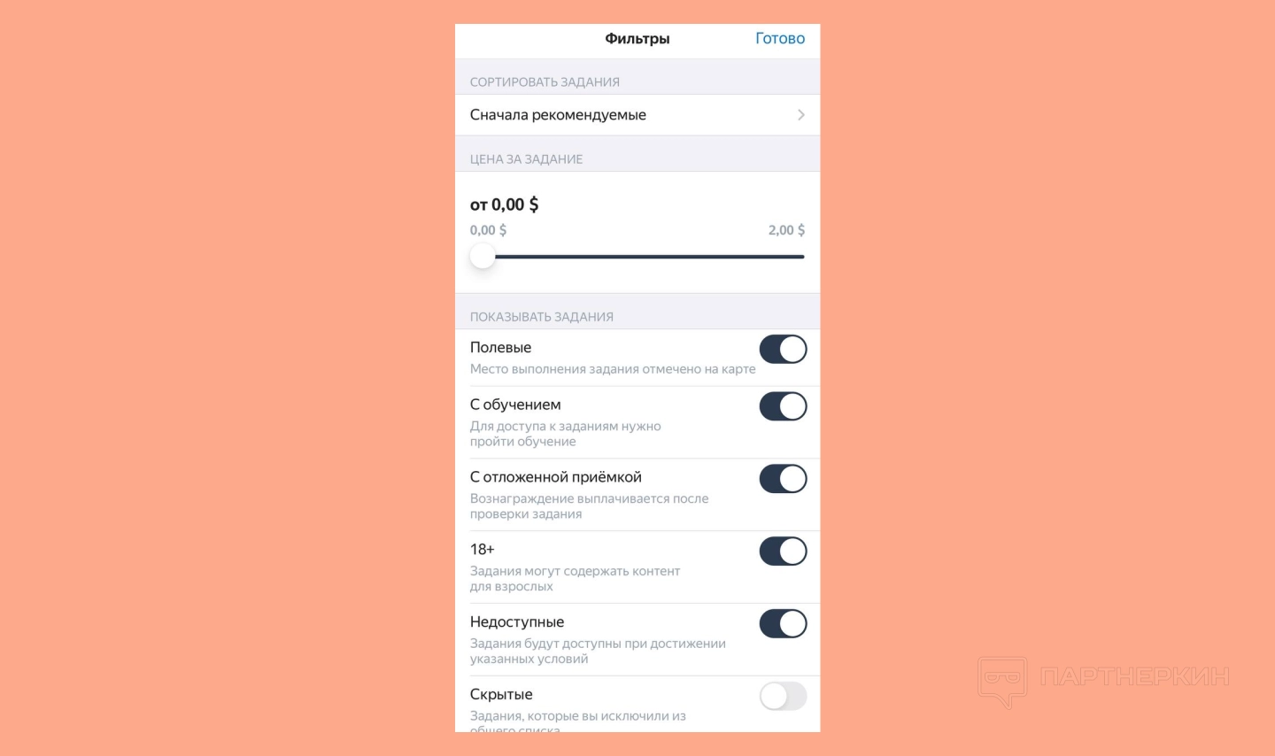 Фильтры для поиска будут расположены вверху экрана — там будет больше способов для сортировки заданий. Вот какие пункты включает список: