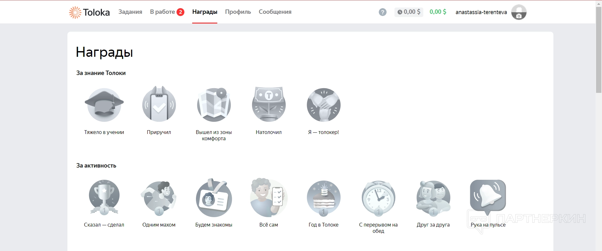 Награды — в этом разделе отображается список наград пользователя, которые он получил за определенные действия внутри биржи. Если список пуст, то отобразятся просто все доступные награды.